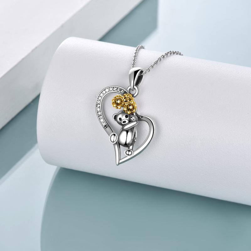Sterling Silber Sonnenblume Panda Bär Schmuck für Frauen Geschenke